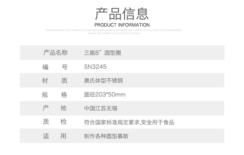 品名: SN3245 8英寸 圓形慕斯圈