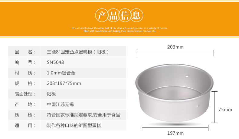 品名: SN5048 8英寸 固定底凸點 蛋糕模 陽極