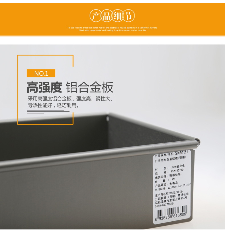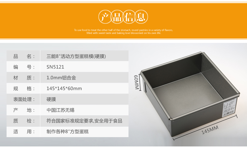 品名:SN5121 8英寸 活動方型蛋糕模(硬膜)