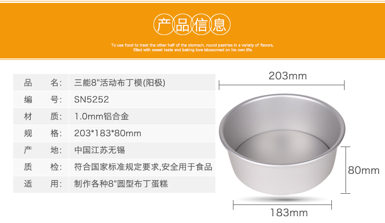 品名:SN5252 8英寸 活動布丁模(陽極)