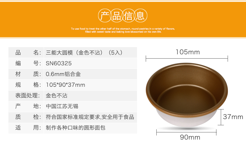 品名:SN60325 大圓模(金色不沾)(5只裝)