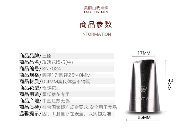 品名:SN7024 玫瑰裱花嘴-5(中)