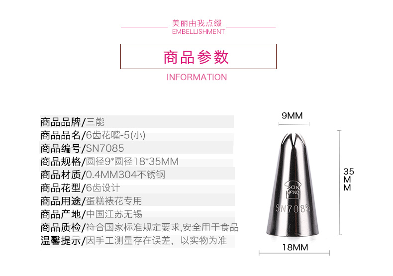 品名: SN7085 6齒裱花嘴-5(小)