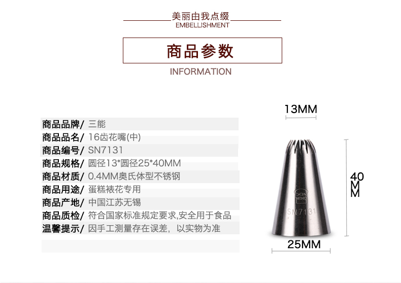 品名:SN7131 16齒裱花嘴(中)